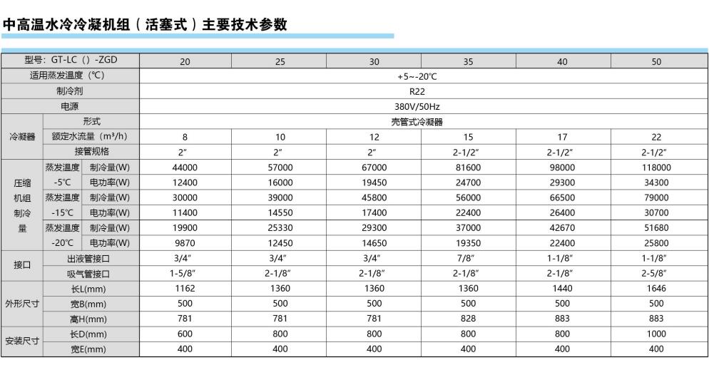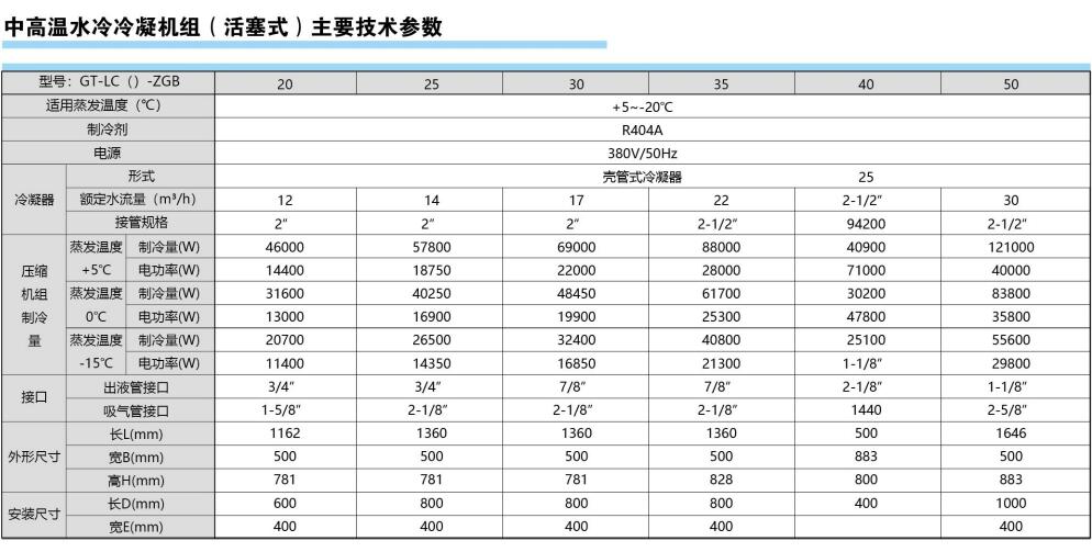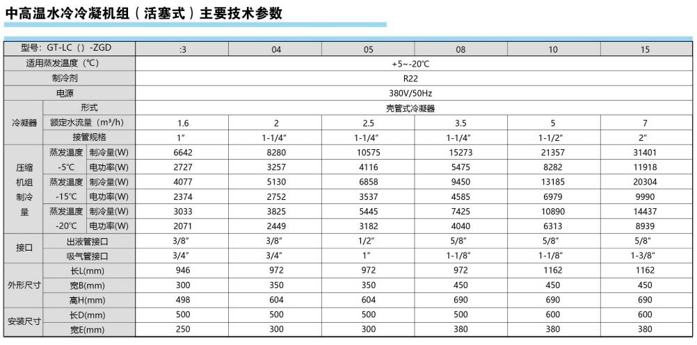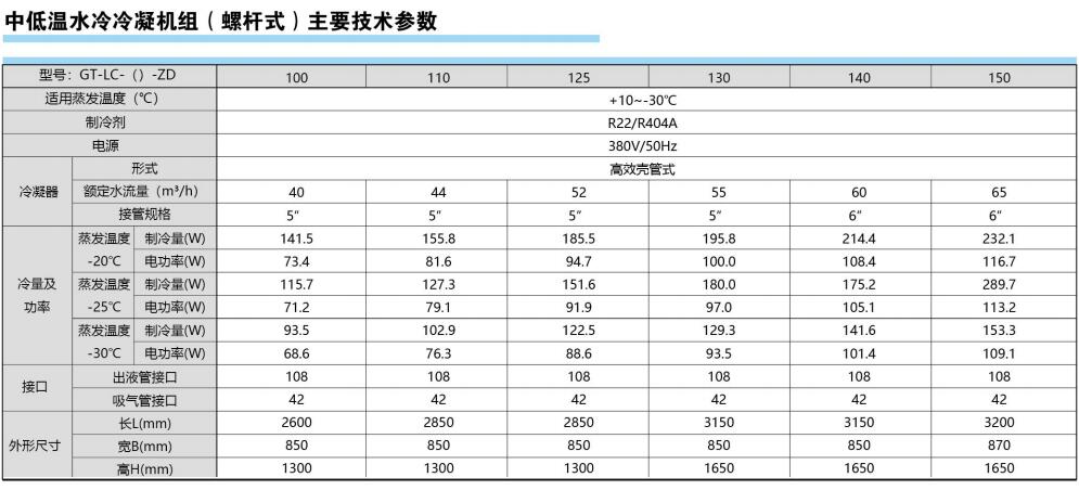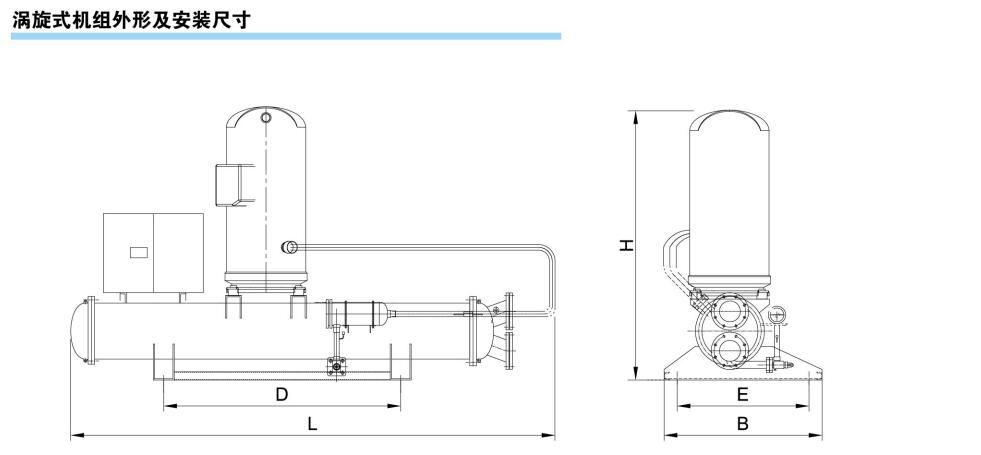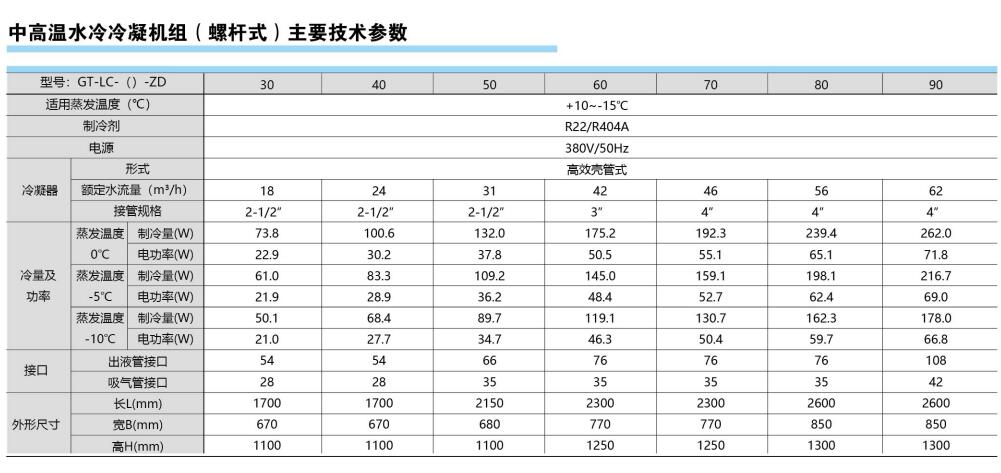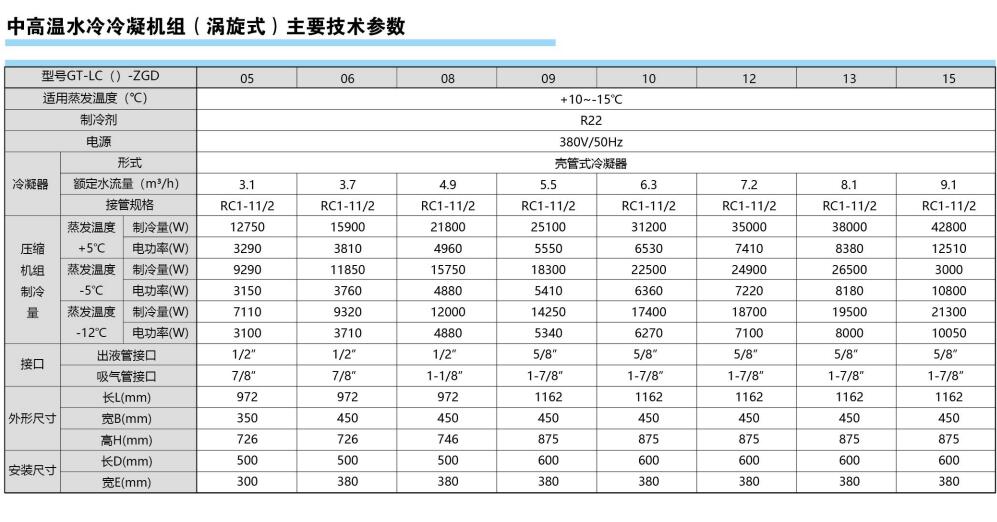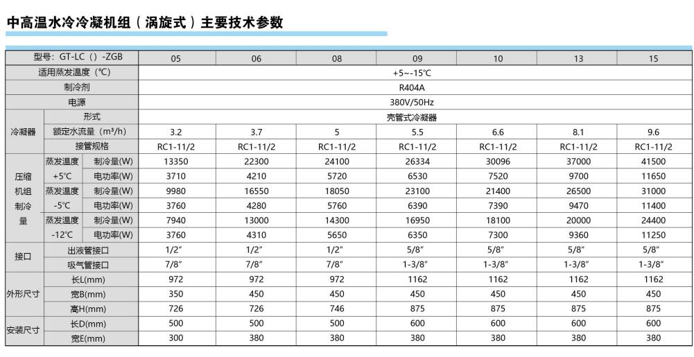 3) 水冷机组采用先进的高热流冷凝管、耐压无缝钢管、端板、端盖等组成的高效壳管冷凝器,质量可靠、性能优良